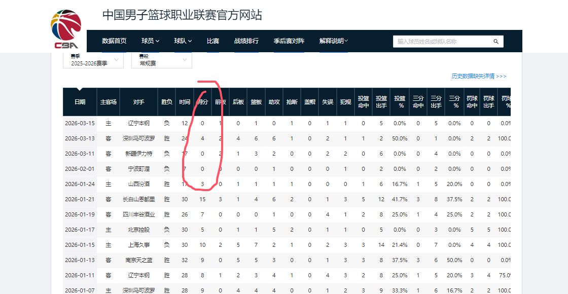 数据方面,广东队与辽宁队的篮板总数比为40-49,助攻总数比为10-26,三分命中率比则为15.6%-39.3%,广东队全方位落后。
